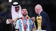 الشيخ تميم بن حمد؛ أمير قطر، كان حاضرًا على منصة التتويج لتسليم ليونيل ميسي؛ قائد الأرجنتين، كأس العالم، لكنه قام قبلها بإهدائه العباءة العربية "البشت"، في لقطة نالت إشادة الجماهير العربية.