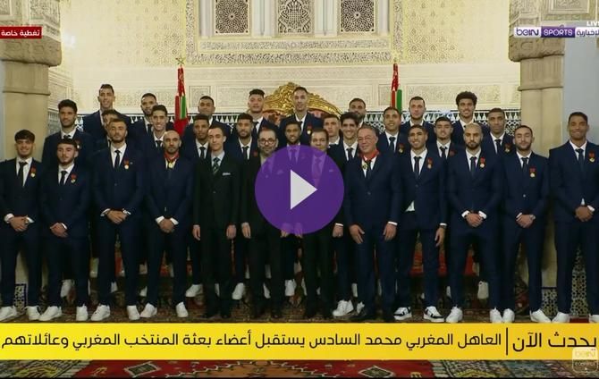 وقلد العاهل المغربي لاعبي منتخب أسود الأطلس الأوسمة ثم التقطت الصور التذكارية له مع اللاعبين في مشهد رائع مثل خير ختام لمشاركتهم التاريخية والتي أصبحوا من خلالها أول منتخب عربي وإفريقي يصعد إلى المربع الذهبي في كأس العالم.