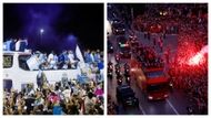 احتفالات كبيرة وحافلات مكشوفة للاعبين جابت شوارع مدينة الرباط المغربية ومدينة بوينس آيرس الأرجنتينية، لكن شتان بين الاحتفالين، ففي الوقت الذي سيطر النظام والرقي على احتفالات المغاربة، حتى وصولهم للقصر الملكي، للتكريم من قبل الملك محمد السادس، سيطرت الفوضى على الاحتفالات الأرجنتينية وسط حضور الجماهير بكثافة في الميادين، للتعبير عن فرحتهم بحصد اللقب العالمي بعد غياب 36 عامًا، حتى وصل الأمر لاستدعاء طائرات مروحية، لإنقاذ حافلة اللاعبين، بعدما علقت بين أكثر من خمسة ملايين مشجعًا، واستحالت عملية استكمال السير على الأرض.
