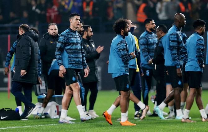 وكان من المتوقع أن يرفع جمهور النصر تيفو (شعار يرسمه المشجعون على المدرج) يحمل كلمات رونالدو في حفل تقديمه "أنا عالمي"، حسب ما أفاد مقربون من رابطة مشجعي النصر.
