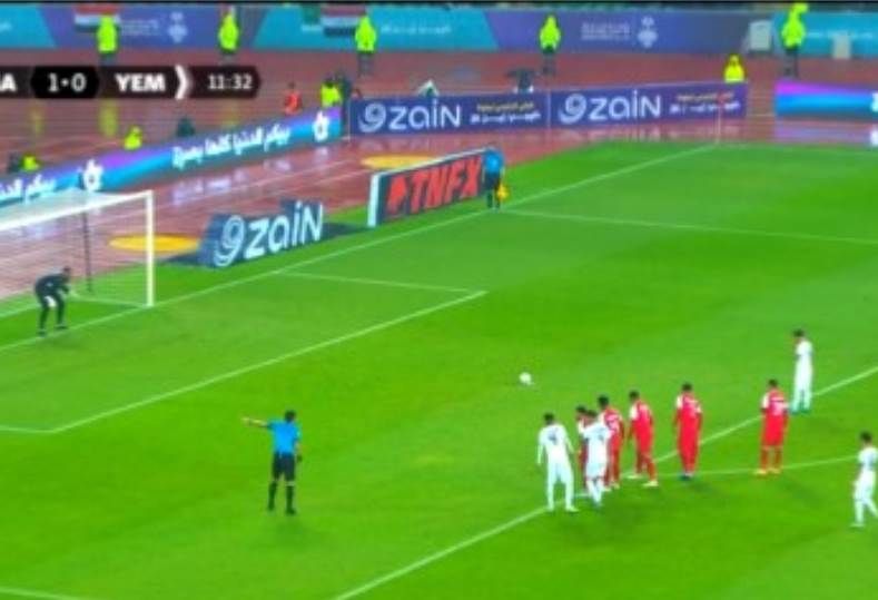 نجح عبد الواسع المطري، في تسجيل الهدف الأول لمنتخب اليمن، والتعادل، من خلال تسديد ركلة الجزاء بقوة في المرمى بالدقيقة "12".