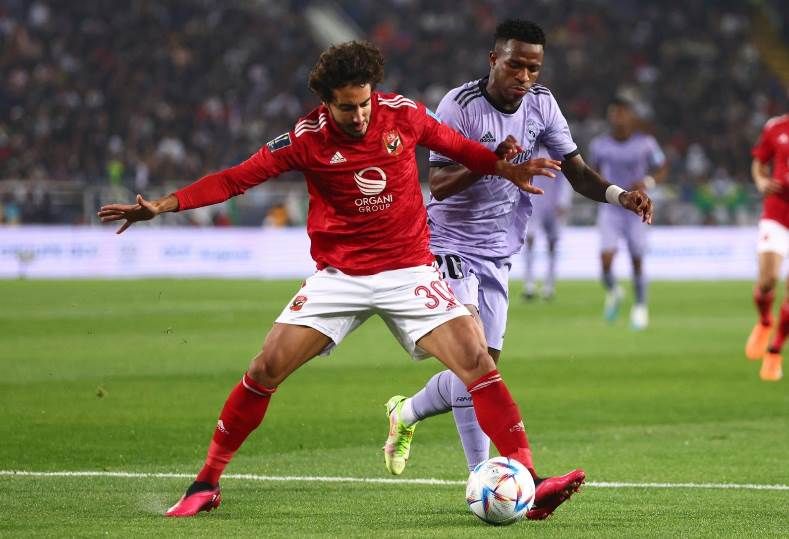 وأخطأ المدافع محمود متولي في تقدير الكرة ليخطفها فينسيوس ويسجل الهدف الأول للريال في الدقيقة 42 من عمر الشوط الأول.