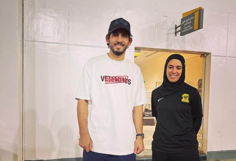 موقع اخبار كورة - قادت الصدفة الجمع بين اللاعبة المصرية سارة عبد الله مدافعة فريق اتحاد جدة السعودي، وزميلها في النادي بفريق الرجال اللاعب المصري والمدافع الدولي أحمد حجازي، على هامش تواجد الفريقان داخل صالة الجمانزيوم الخاصة، بالنمور الصفراء في جدة.