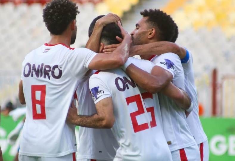 احتفال زيزو مع لاعبي الزمالك بعد هدفه في فاركو
