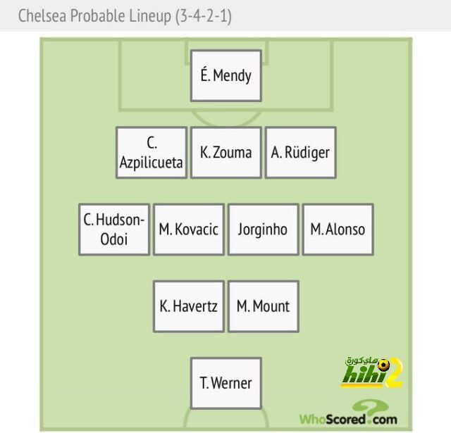 هذا وقد تآلفت التشكيلة من ” ميندي ، روديجير ، زوما ، ازبيلكويتا ، الونسو ، جورجينيو ، كوفاسيتش ، هودسون ، مونت ، هافرتز وفيرنر “.