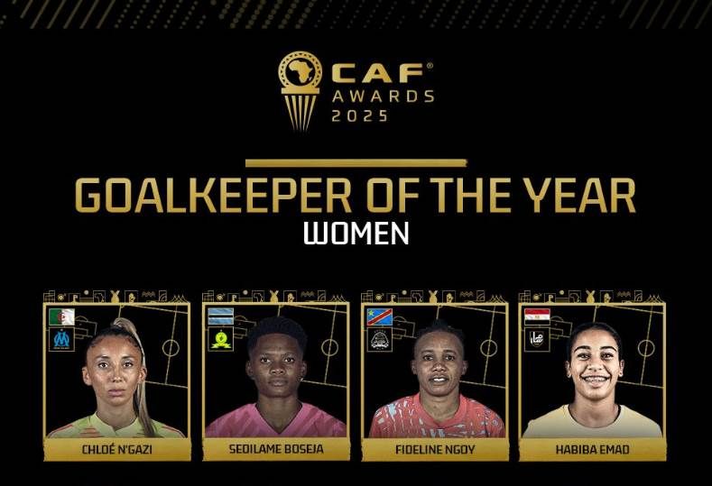 موقع اخبار كورة - أعلن الاتحاد الأفريقي لكرة القدم "كاف"، عن قائمة جائزة أفضل حارسة مرمى صاعدة في 2025، التي تضمنت تواجد 10 لاعبات، بينها لاعبة مصرية وهي وحبيبة صبري حارسة مسار، والتي تنافس على لقب أفضل حارسة داخل قارة افريقيا.