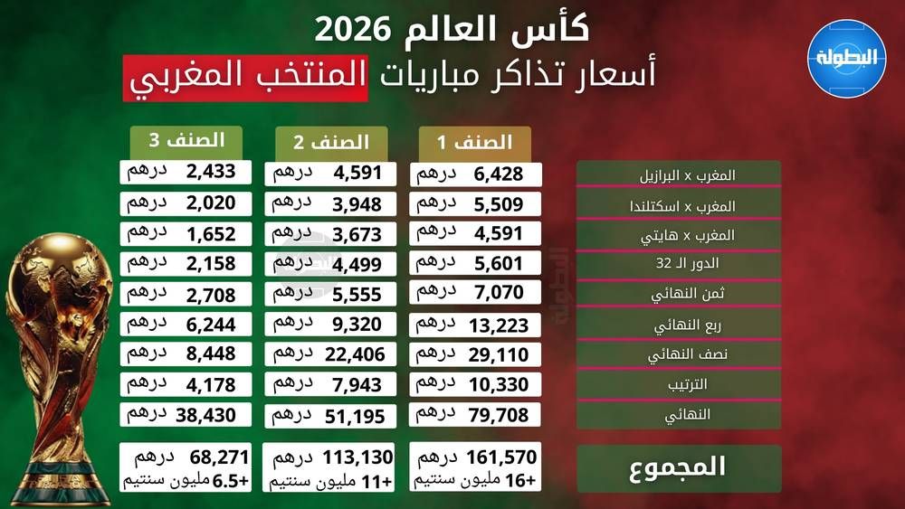* أثمنة تذاكر مباريات المنتخب المغربي في دور المجموعات