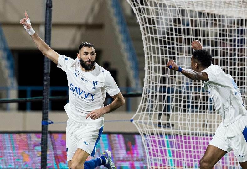 بعد مرور 31 دقيقة فقط على انطلاق المباراة، أعلن الفرنسي كريم بنزيما عن نفسه مع الهلال بتسجيل أول أهدافه.