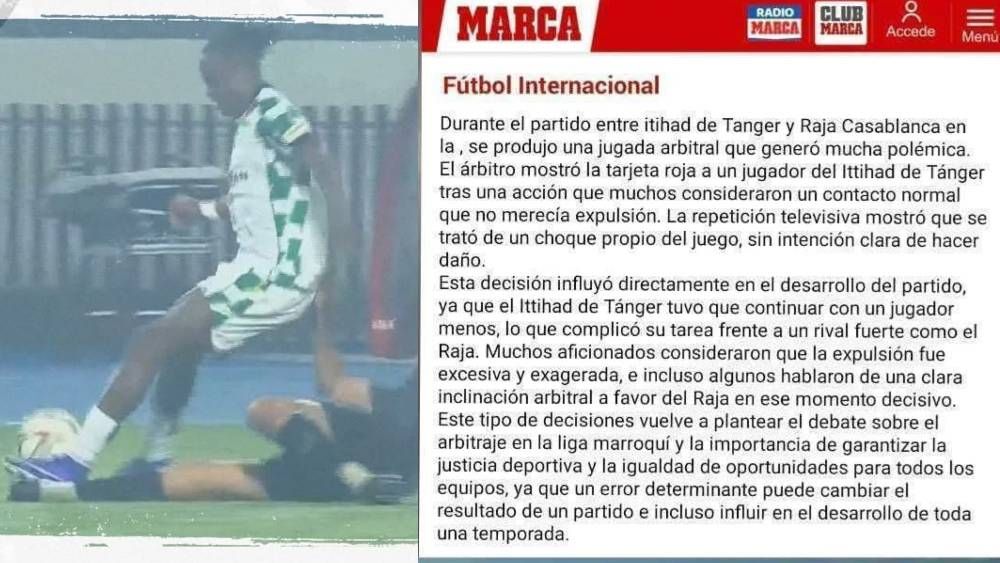 وجدت بعض المواقع ومحطات إذاعية نفسها في قلب الجدل، بعد تداولها خبرا منسوبا لصحيفة ماركا الإسبانية، يتعلق بحالة طرد لاعب اتحاد طنجة بلال الودغيري خلال مواجهة فريقه أمام الرجاء الرياضي، والتي جرت مساء أمس الأحد برسم الجولة الثالثة عشرة من البطولة الاحترافية.