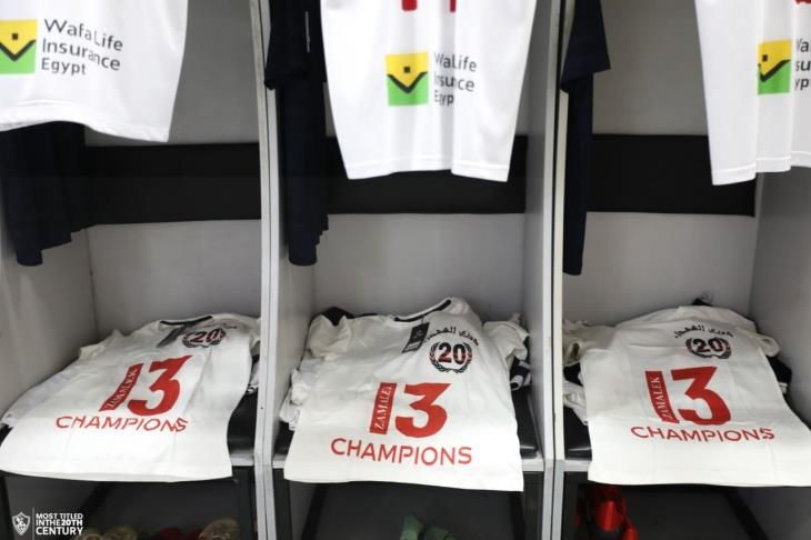 يرتدي فريق الزمالك قميصا خاصا للاحتفال ببطولة دوري we المصري خلال فترة الإحماء التي تسبق مواجهة البنك الأهلي في الجولة الأخيرة من المسابقة.