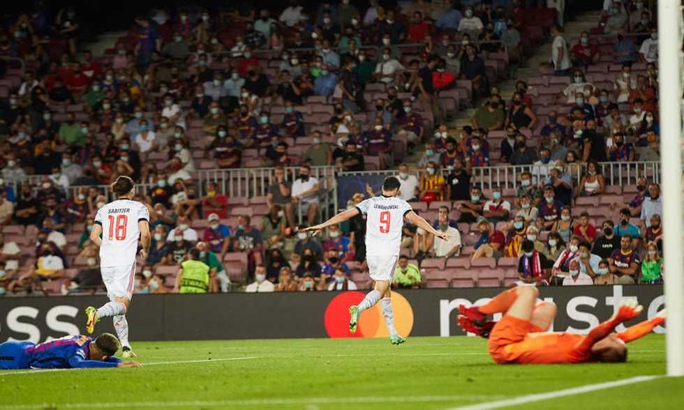 بداية العرض على "كامب نو" أتت بهدف توماس مولر في الدقيقة 34، فيما أضاف روبرت ليفاندوفسكي الهدف الثاني في الدقيقة 56.