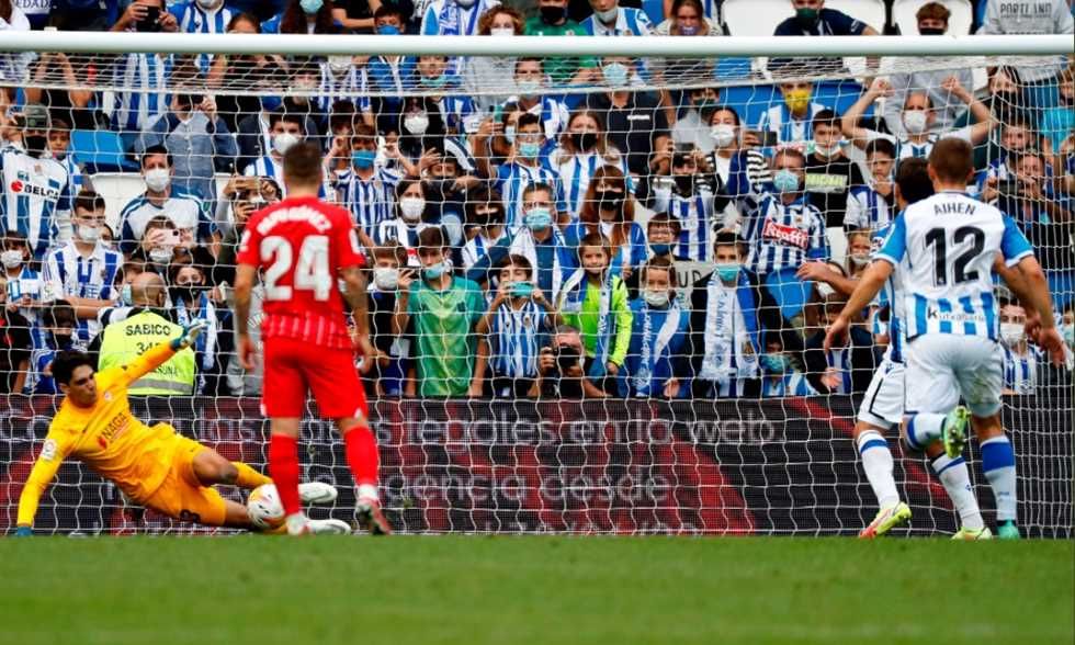 وشهدت المباراة تصدي المغربي ياسين بونو حارس مرمى إشبيلية لركلة جزاء أمام المتخصص ميكيل أويارزابال قائد ريال سوسيداد.