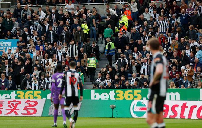 وطالب الحكم اللاعبين بالتجمع بجوار دكة بدلاء فريقيهما قبل أن يطالبهم بالعودة الى غرف الملابس.