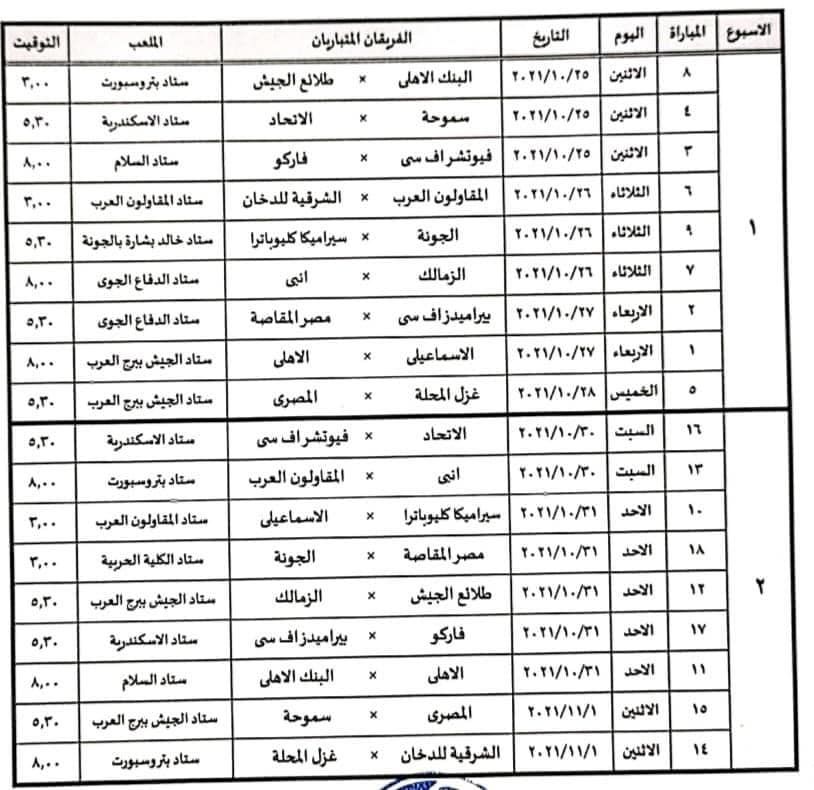 ومن المقرر أن يتوقف الدوري في الخامس من شهر نوفمبر المقبل وحتى السادس عشر من الشهر ذاته لخوض منتخب مصر مباراتين ضد أنجولا والجابون في الجولتين الخامسة والسادسة من التصفيات الإفريقية المؤهلة لكأس العالم 2022.