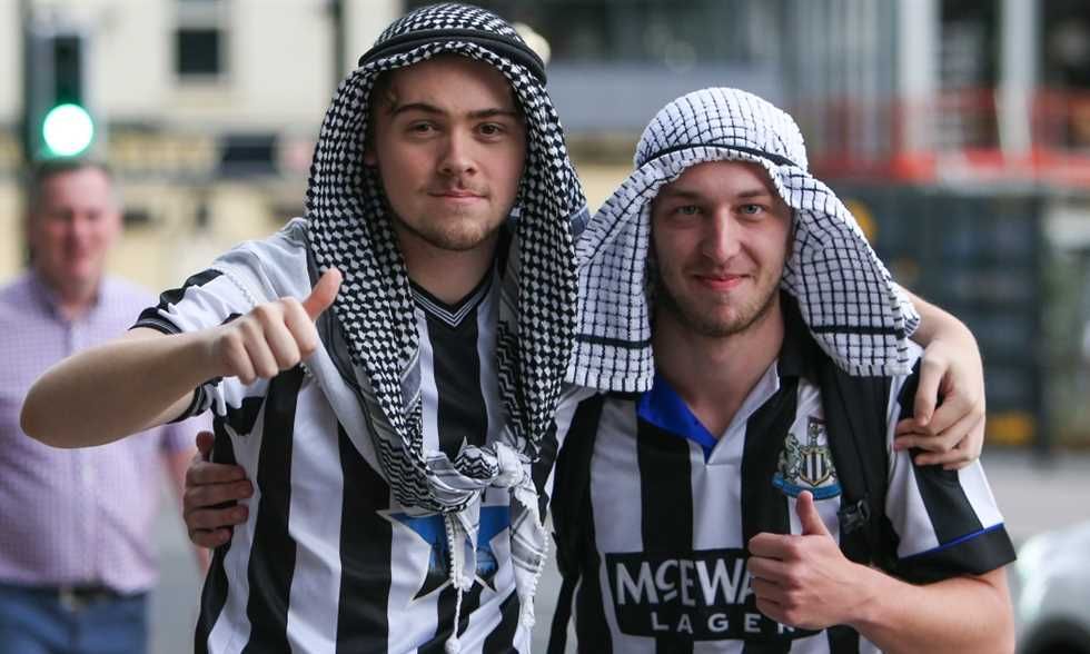 "وقد حضر عدد من المؤيدين مؤخرًا نادي سانت جيمس بارك وهم يرتدون أغطية للرأس وأردية ، إيذانًا باستيلاء صندوق الاستثمار العام عللى النادي".