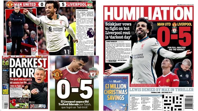 ذا تايمز: "إهانة تامة، محمد صلاح وكتيبة ليفربول يفوزون على مانشستر يونايتد بخماسية في أولد ترافورد".