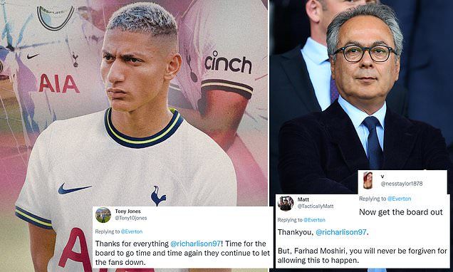 'Thankyou, @richarlison97. But, Farhad Moshiri, you will never be forgiven for allowing this to happen,' one fan posted on Twitter.