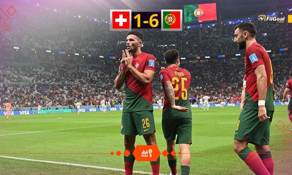 واكتسح منتخب البرتغال منافسه سويسرا اليوم الثلاثاء بخمسة أهداف لهدف في ملعب لوسيل في ختام دور الـ16 من كأس العالم 2022.